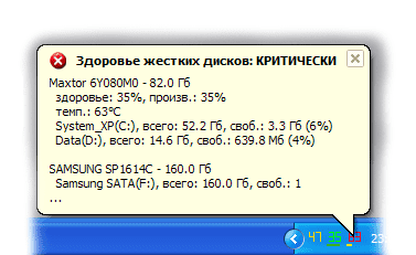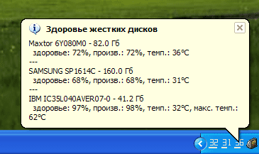 Документация HDDlife — Значок в трее — Информационные сообщения